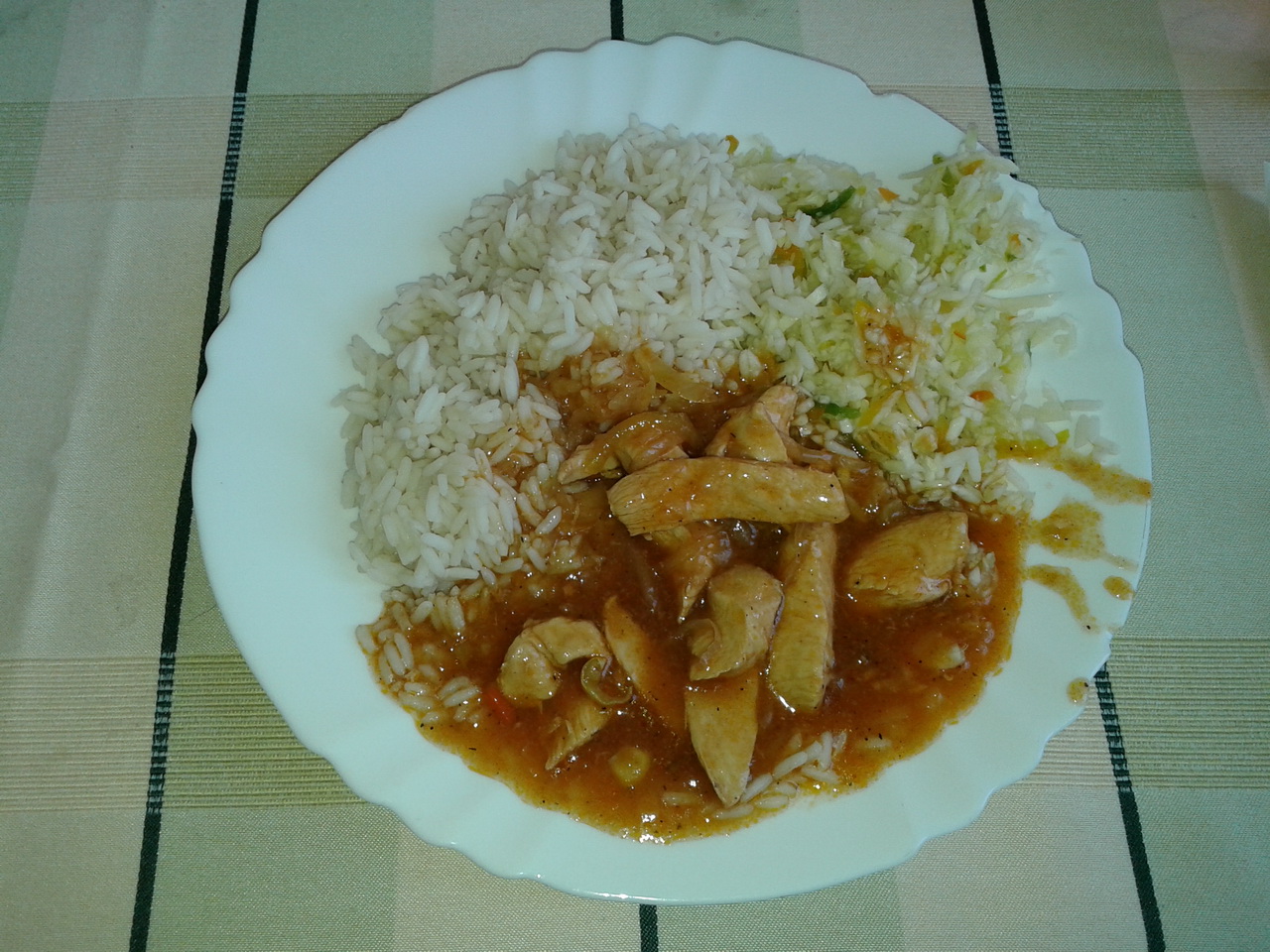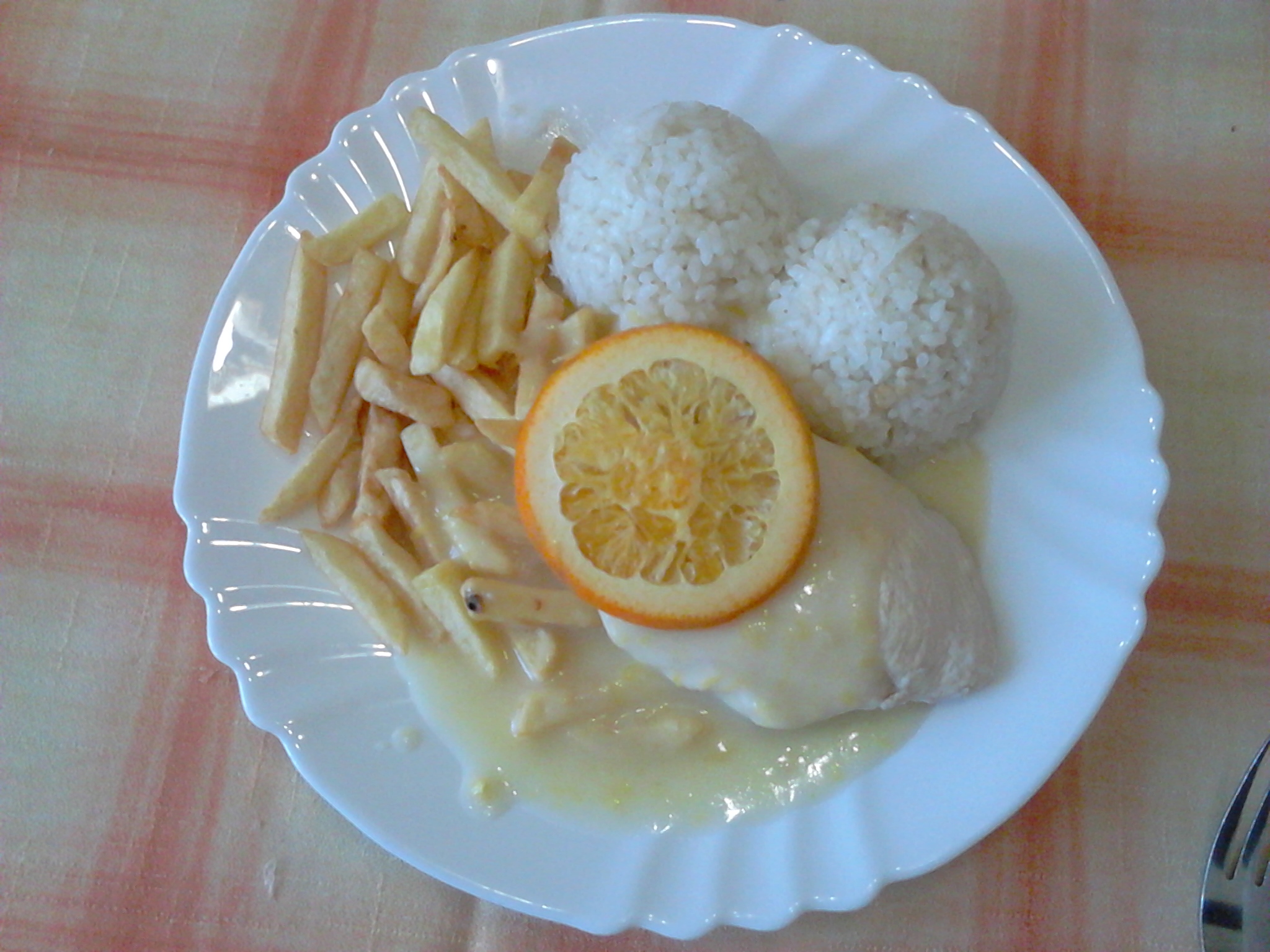 - Kuracie na pomaranči s mandľami(1,8),ryža,hranolky 63/100/90/100 g