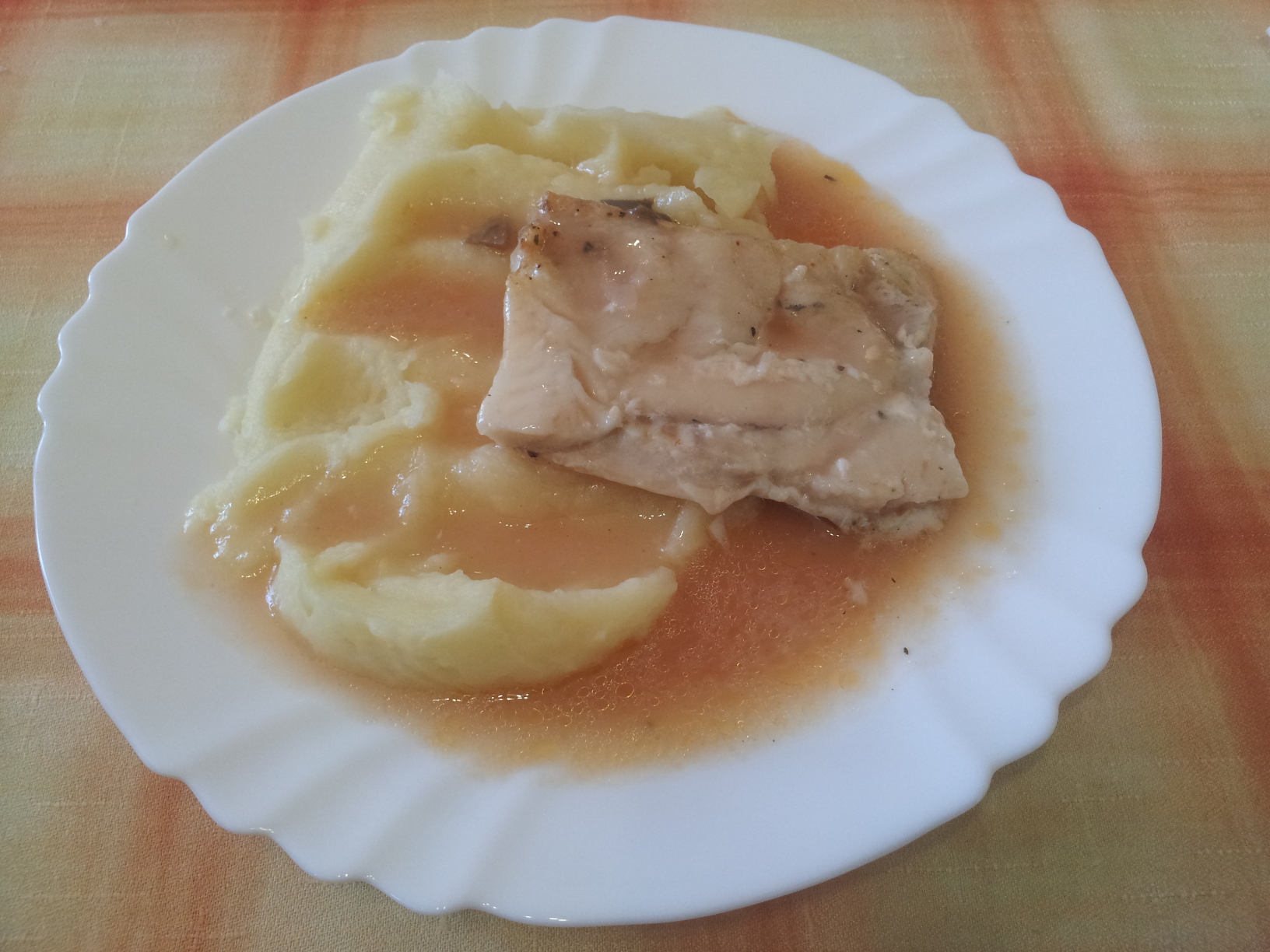 - Filé na víne a šampiňónoch(1,7), zemiaková kaša(7), 150/320g “V”