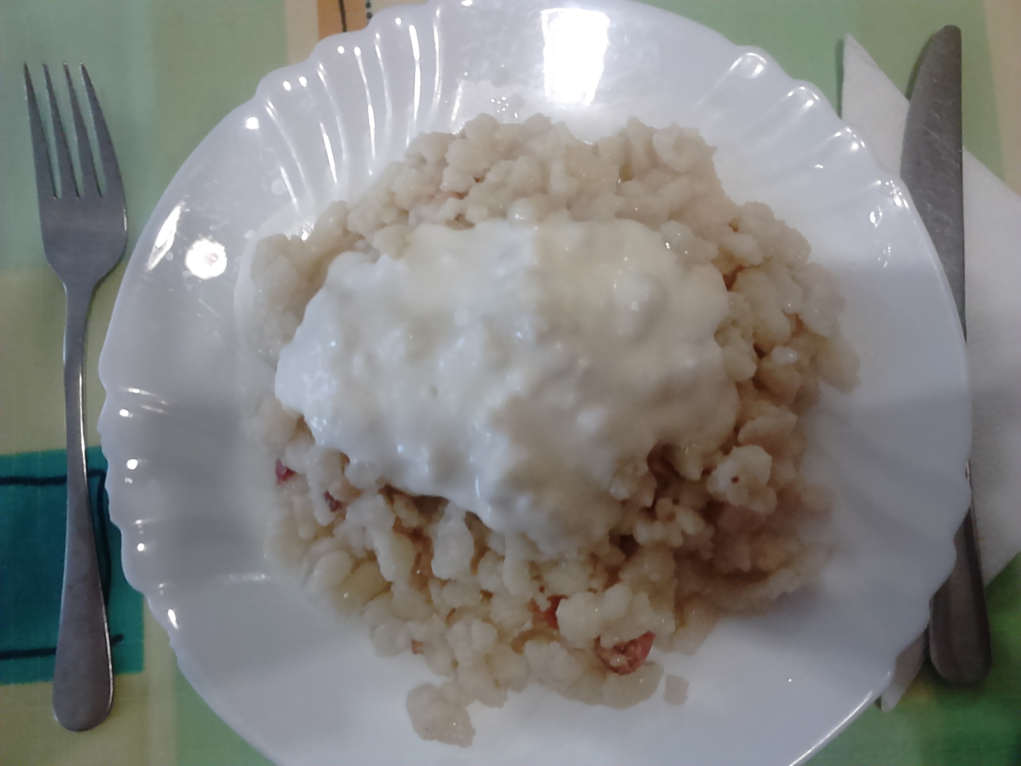 - Krupoto s hubami a červenou šošovicou (vegán) 350g (jačmenné krúpy,cibuľa,cesnak,červená šošovica,biele víno,sušené huby,udené tofu,soľ,korenie)