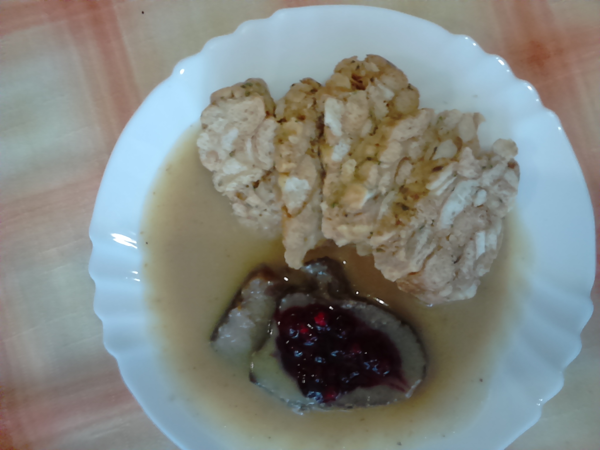 - Segedínsky guláš (1,7), knedle (1,3,7) 65/220/190 g